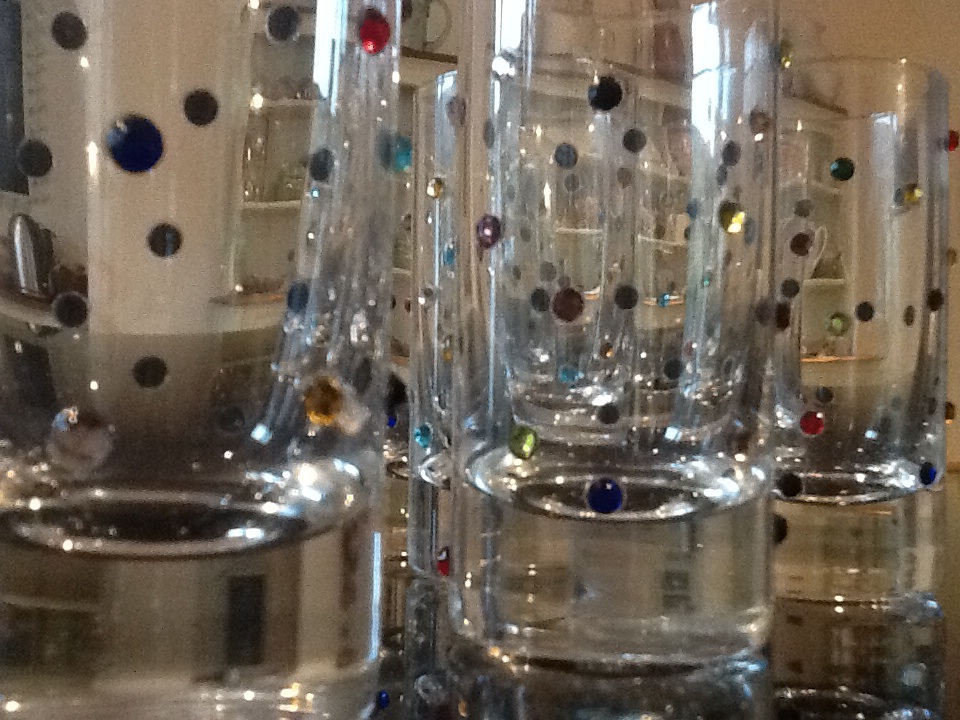 We gave it a shot September 14, 2015September 14, 2015 ~ guernseyjane ~ 1 Comment Dartington shot glasses blinged up using hot fix tool and rhinestones. Bit fiddly but very satisfying. Bought from bric a brac stall so Roesia can contemplate their beauty, value and the craftiness of her aunty jane when she uses them.