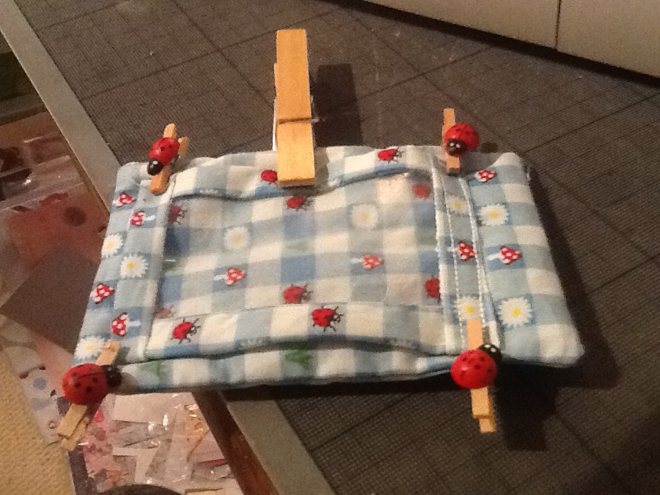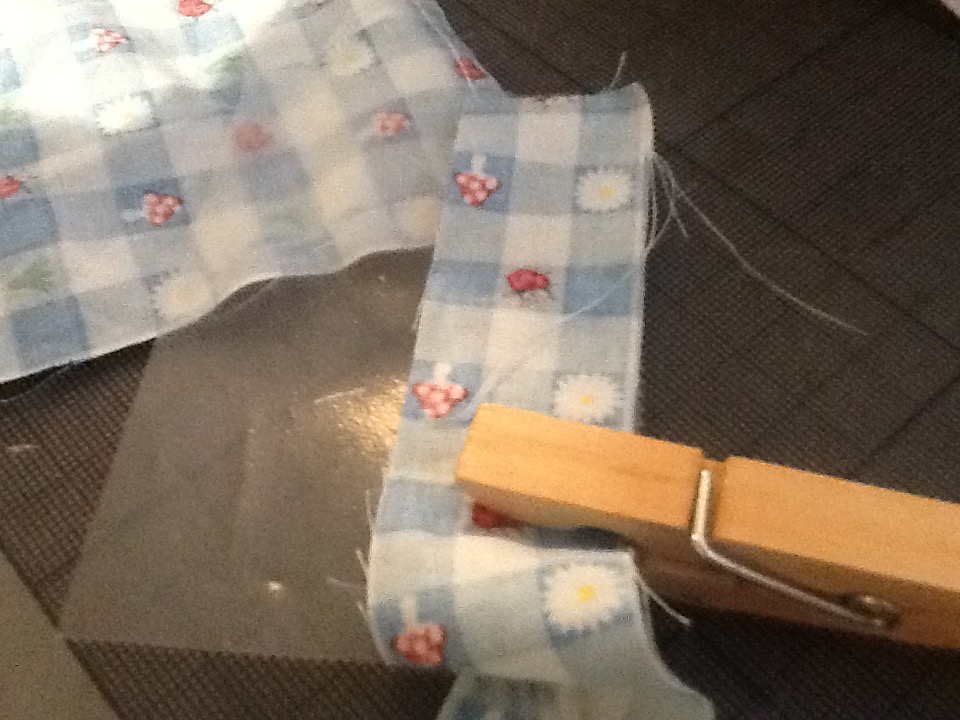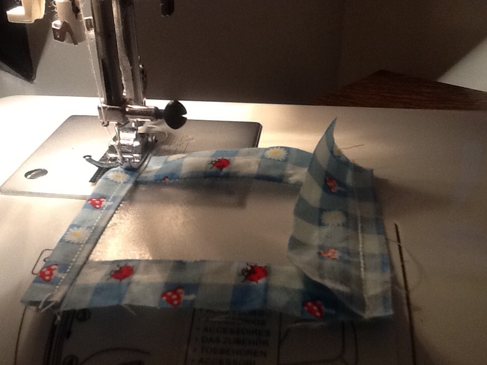 hmm, mistake with the gingham fabric, too open weave so lots of hand and over sewing. Still a rustic storage solution for bits I want to keep near the sewing machine.