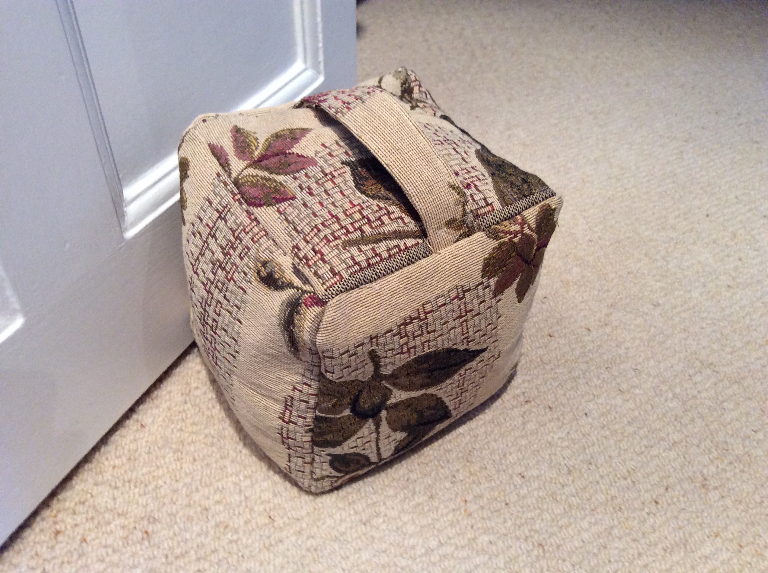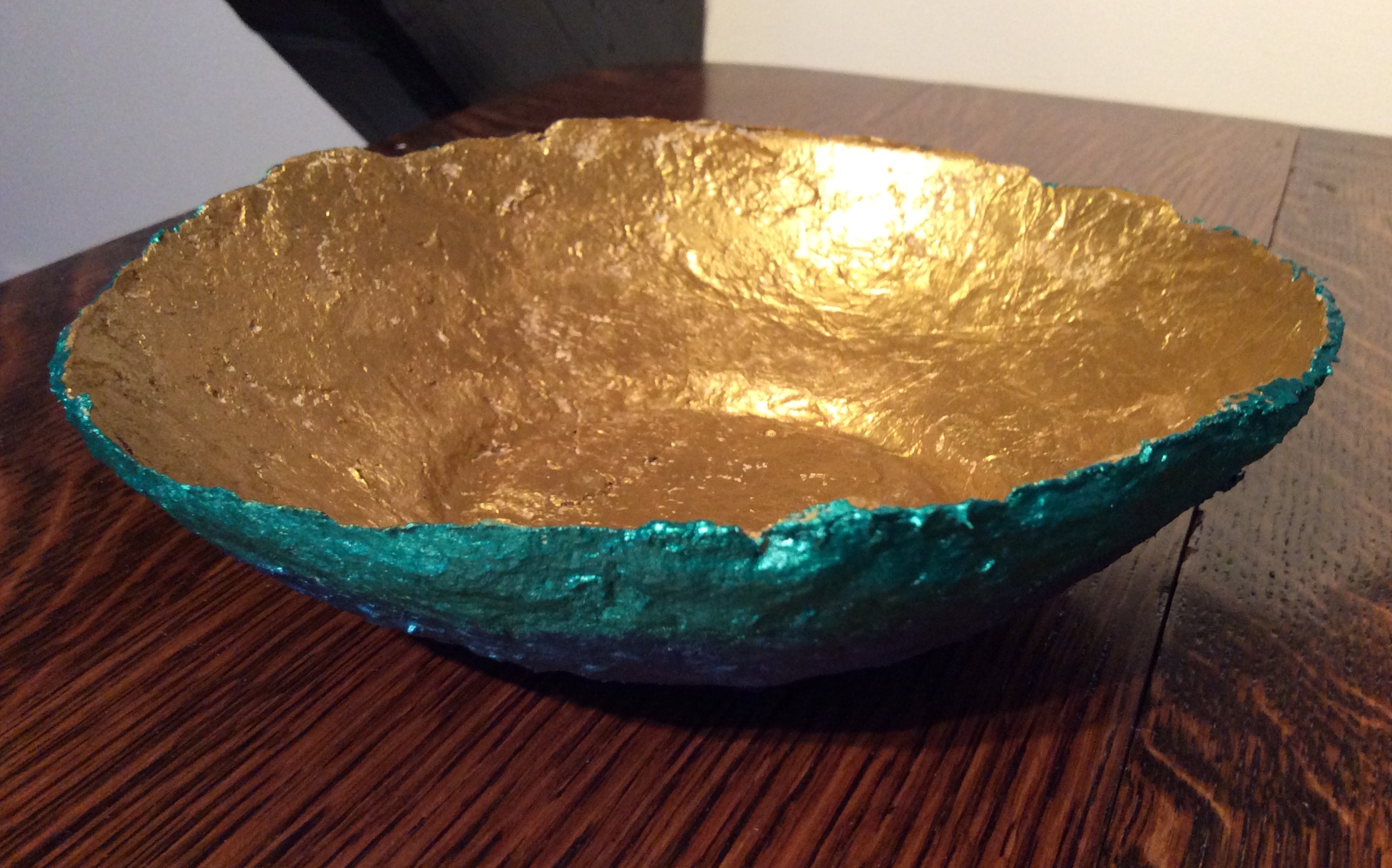 The cardboard box was cut into a ring doughnut shape using a craft knife around a dinner and side plate as templates. Honestly, the finished piece looks as good as a bought polystyrene ring would.