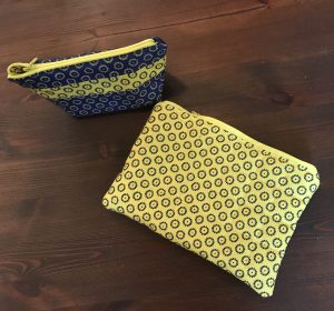 I put tabs on the end of some the zips to make the seams less bulky as I advanced, but these simple quilted make up bags with boxed bottoms are my favourites.