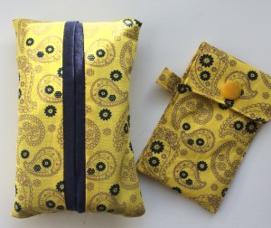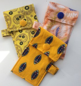 These little pockets fit on your key ring and usefully hold a lip balm or some pooh bags or emergency fiver. I made a bunch of them with co-ordinating tissue pockets (see post from 2015 A-tishoo! A tissue …) for a sweet little handbag accessory gift. The original idea came from Lorrie Nunemaker but I simplified her project a bit.