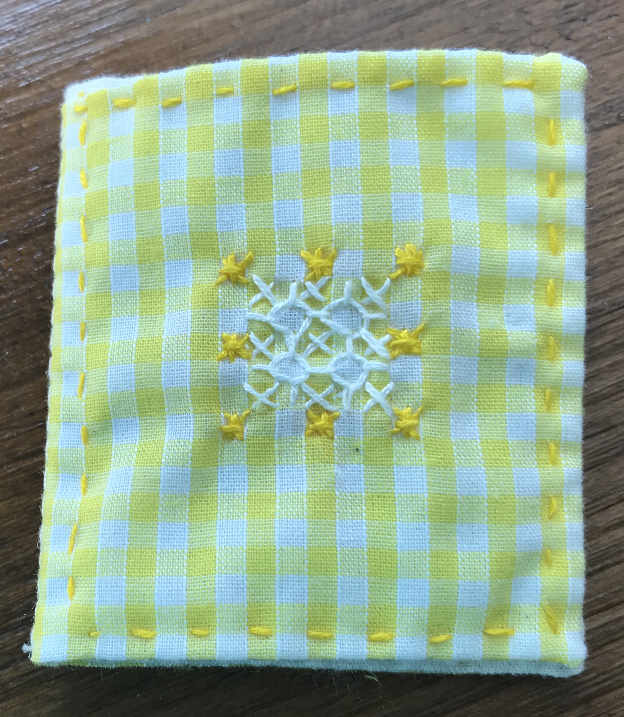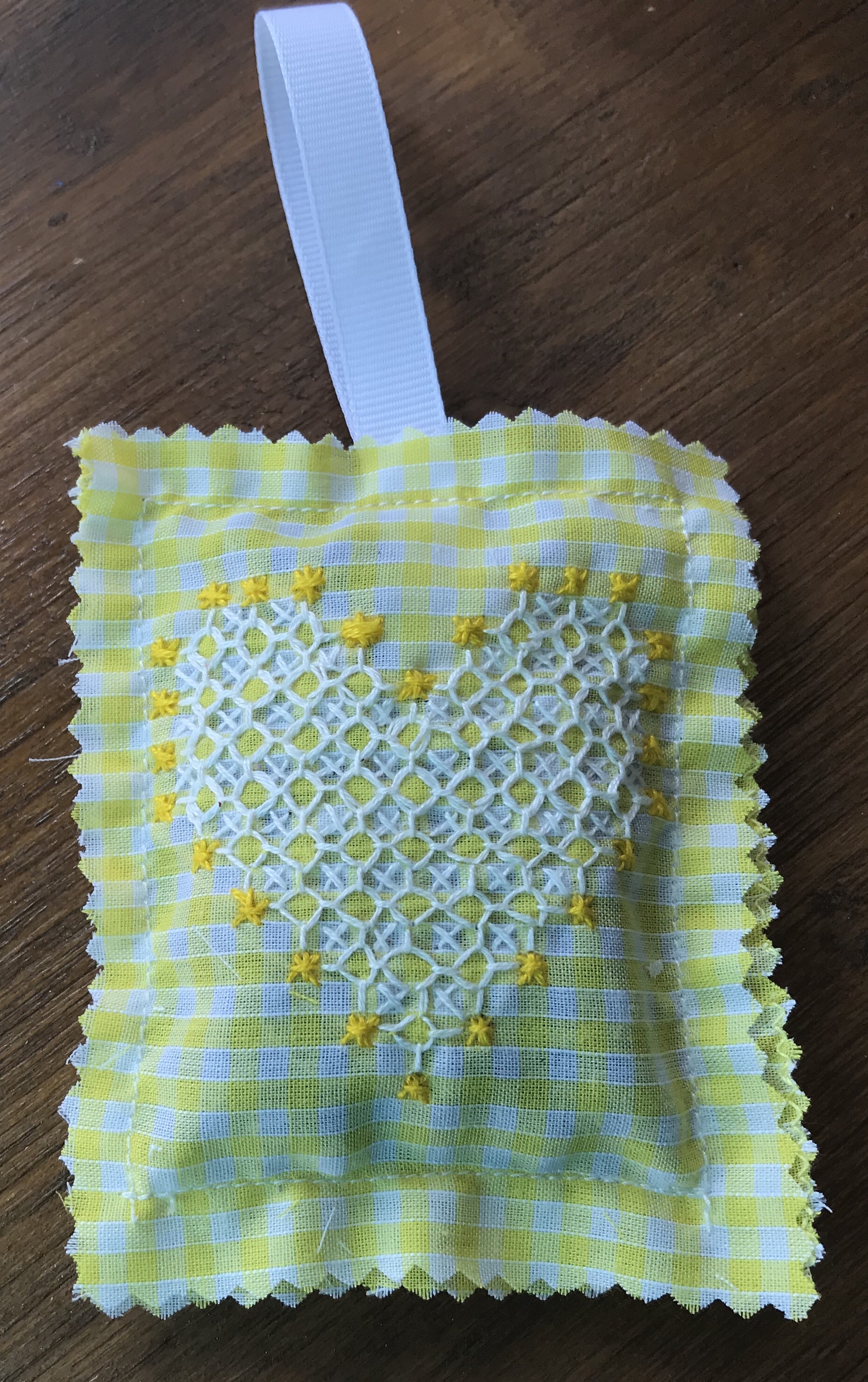 This is a simple cross stitch based embroidery that lifts gingham scraps quickly into lavender bags and more …