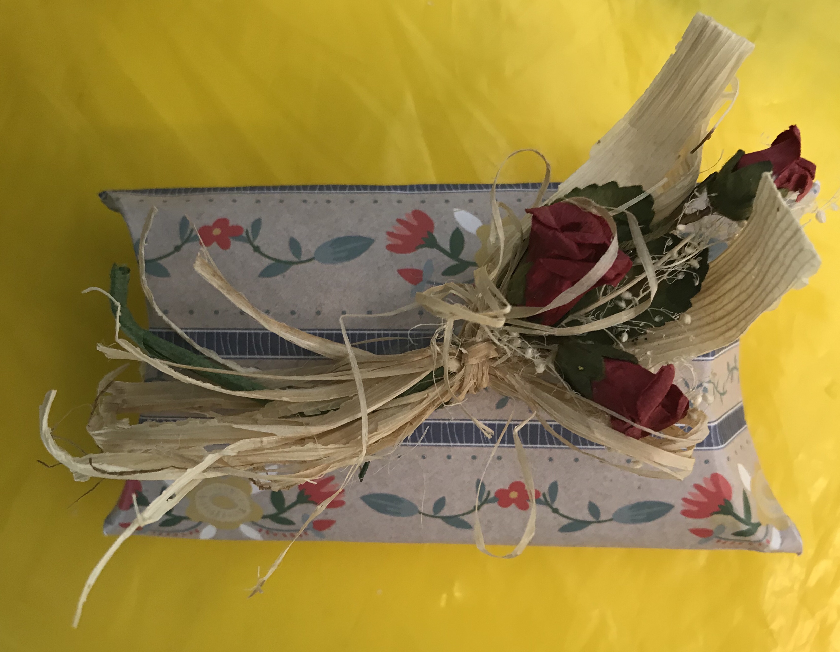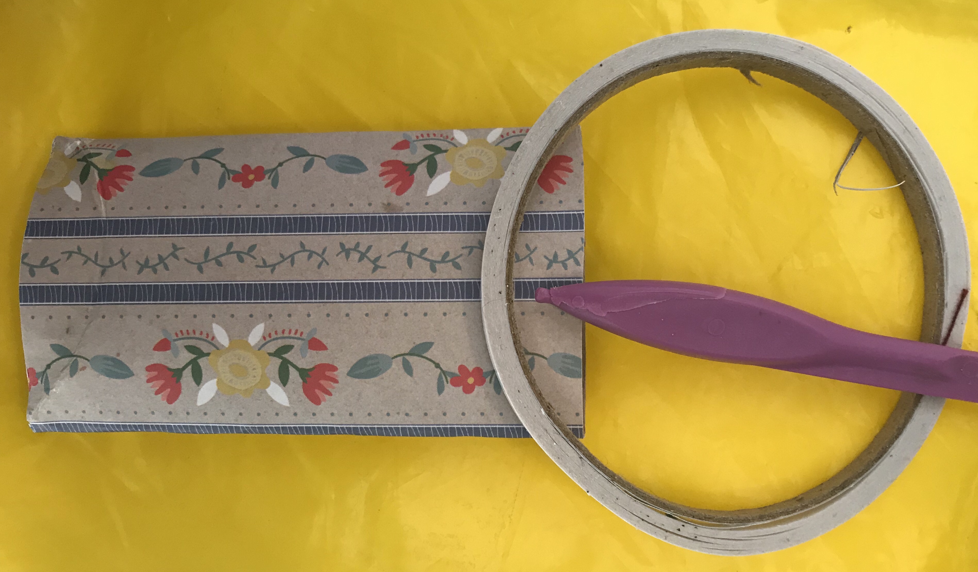 Rescue a humble empty loo roll or paper towel tube from recycling, flatten it lightly and cover it with your choice of lightweight paper- wet glue is fine if it doesn’t soak your chosen paper. (Some people sterilise their tubes in the microwave before crafting with them)