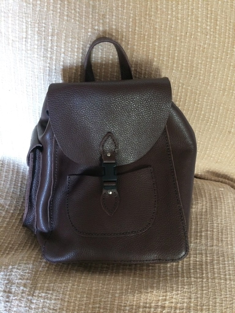 Lovely, quality leather bag sewn by me! OK, the pieces were all cut out with stitch holes and foolproof instructions. Nevertheless I feel creative pride in making this birthday gift into something I will use and enjoy for years and years.