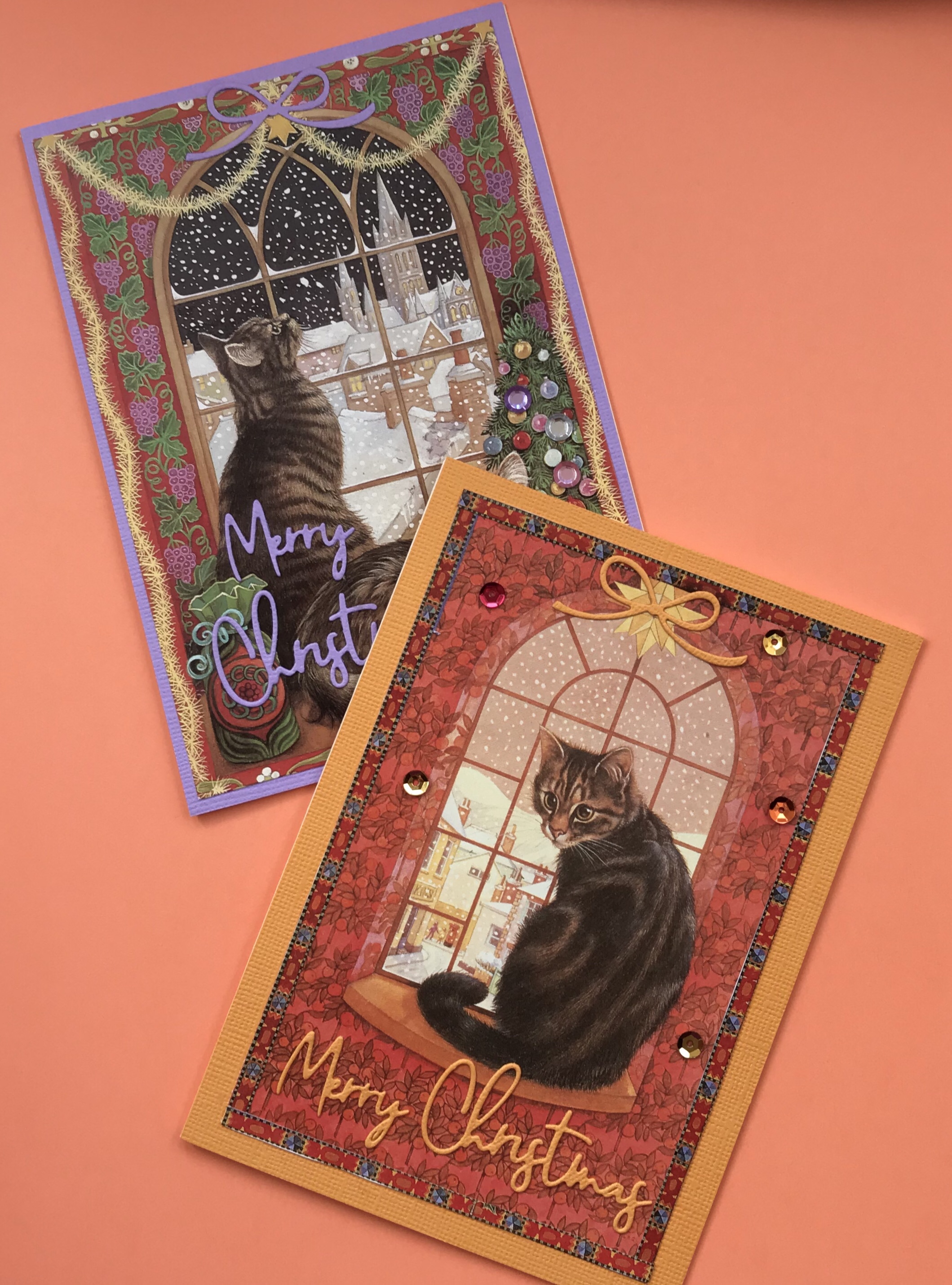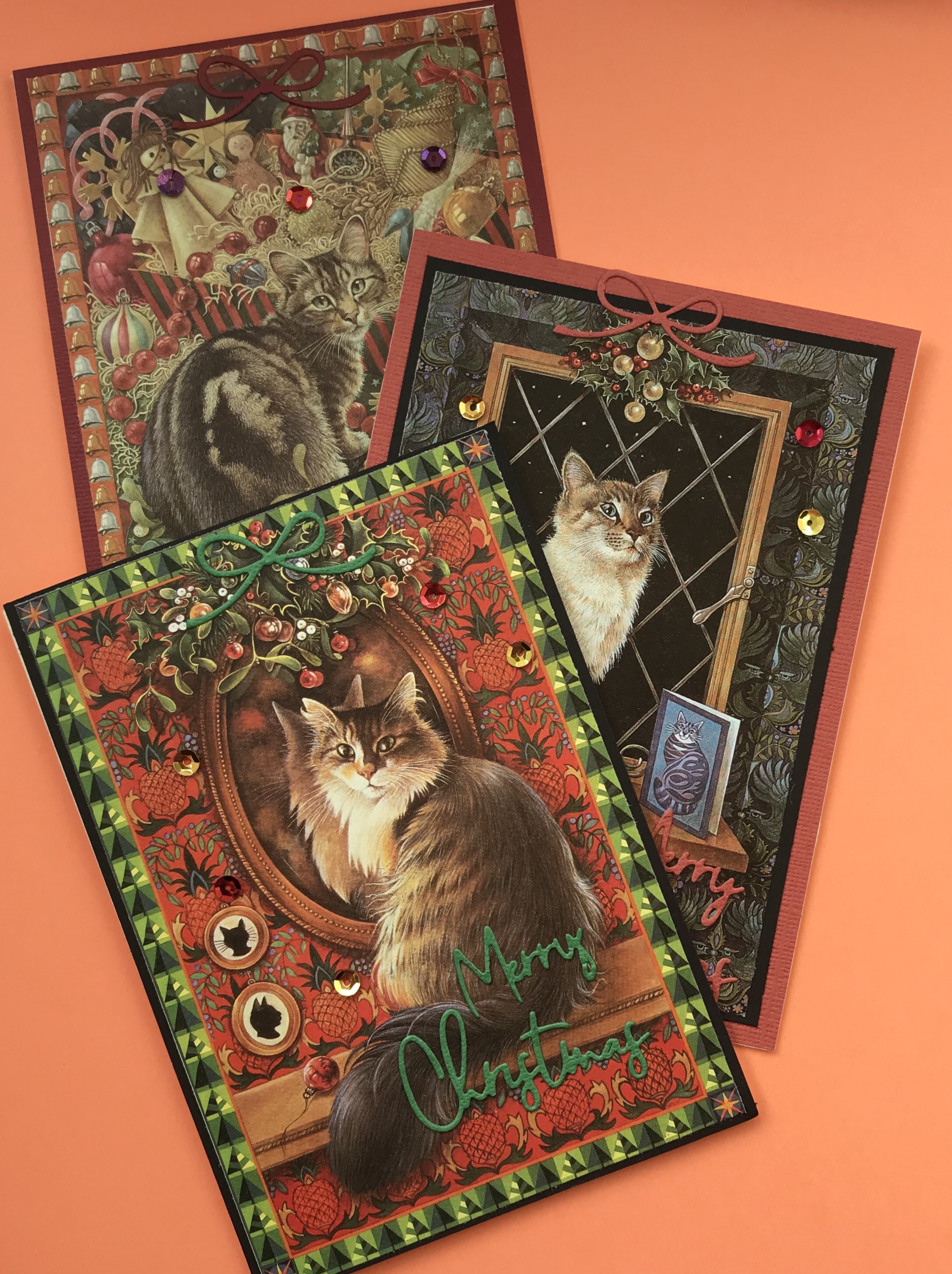 I have been recycling an old Lesley Anne Ivory perpetual diary into cat cards and decided to put the Christmas cats into one bundle.