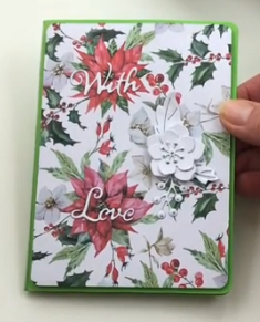 These images just need matting onto card before adding to the A6 card front. I cut the ‘Merry Christmas’ and bow, using papercraft society November kit dies, from the mat card before sticking the image on to it.