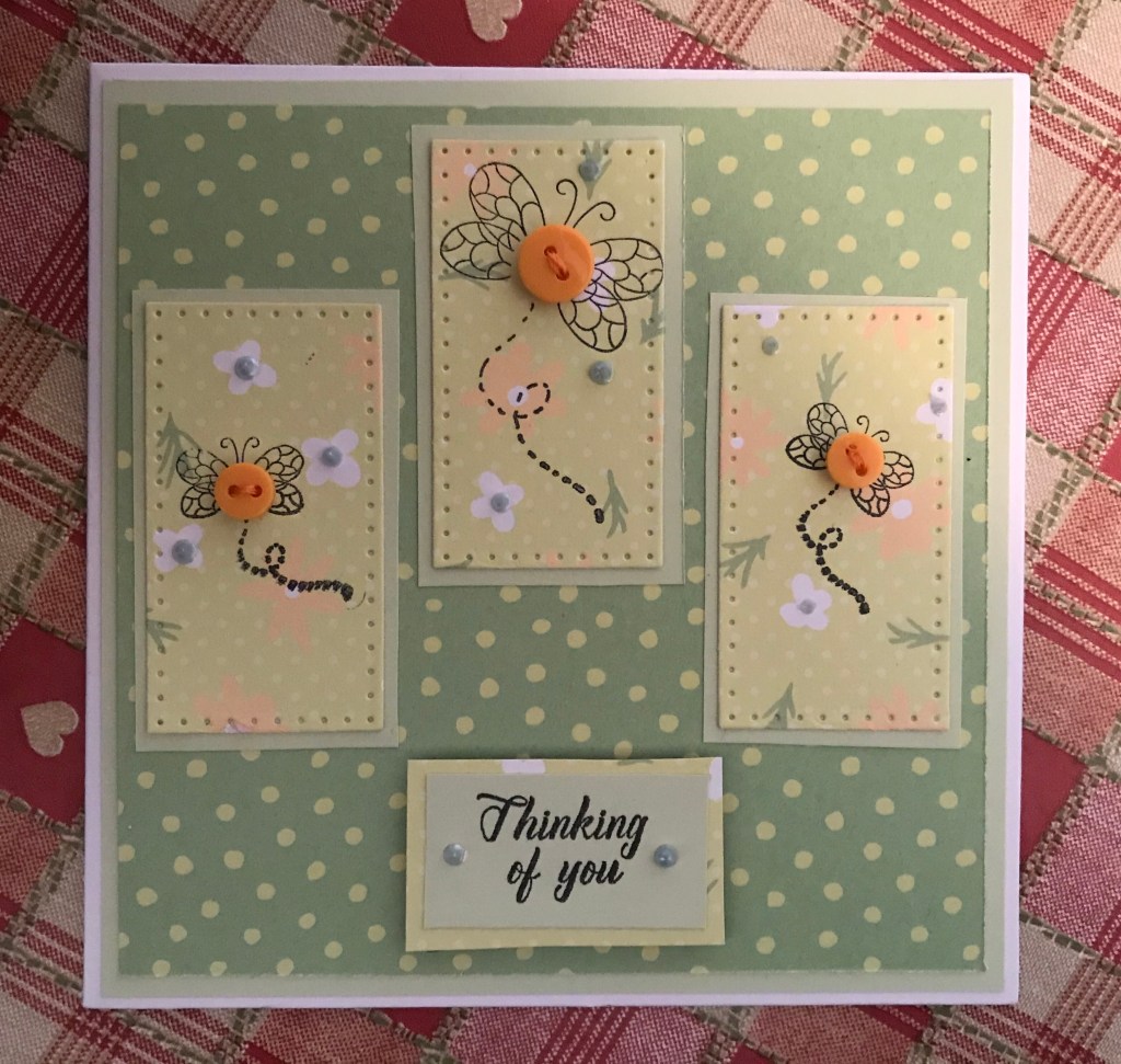 Another 20 cards made and there is still a stack of paper and card to use up as well as a jar of buttons.