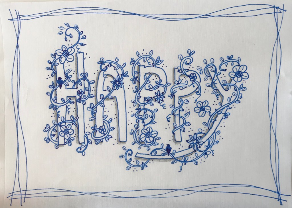 A new routine in lockdown life is trying my hand at doodling and drawing. I am following the weekday uploads by claritystamp on you tube (rather than the 10am lives, I catch up in the afternoon.