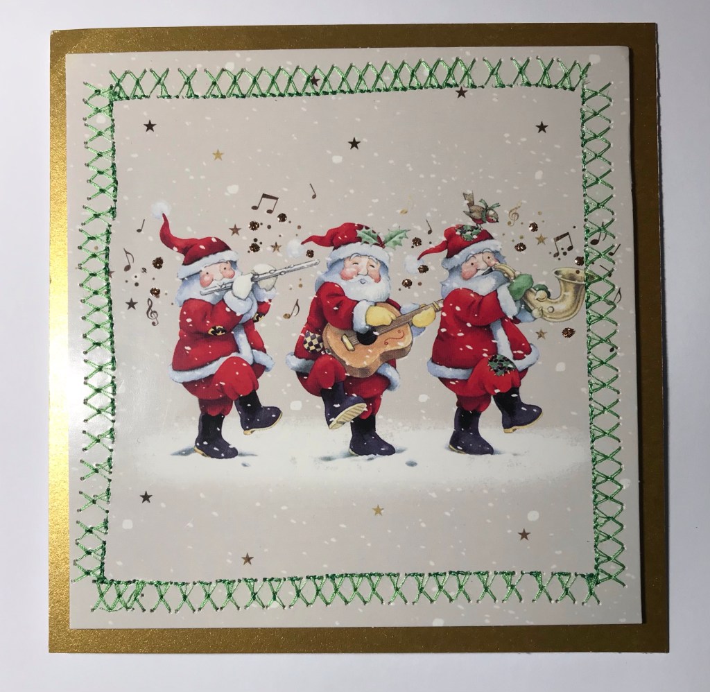 I am stitching on cards this month, but it is a long process so these upcycled Christmas cards were stitched on the sewing machine.
