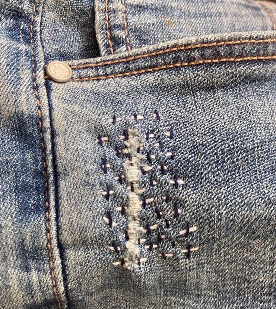 First go at Japanese embroidery technique on my trendily ripped jeans.