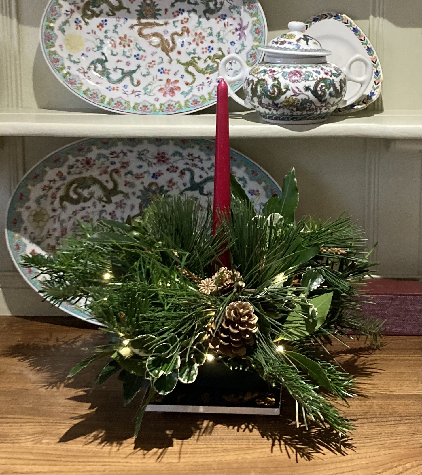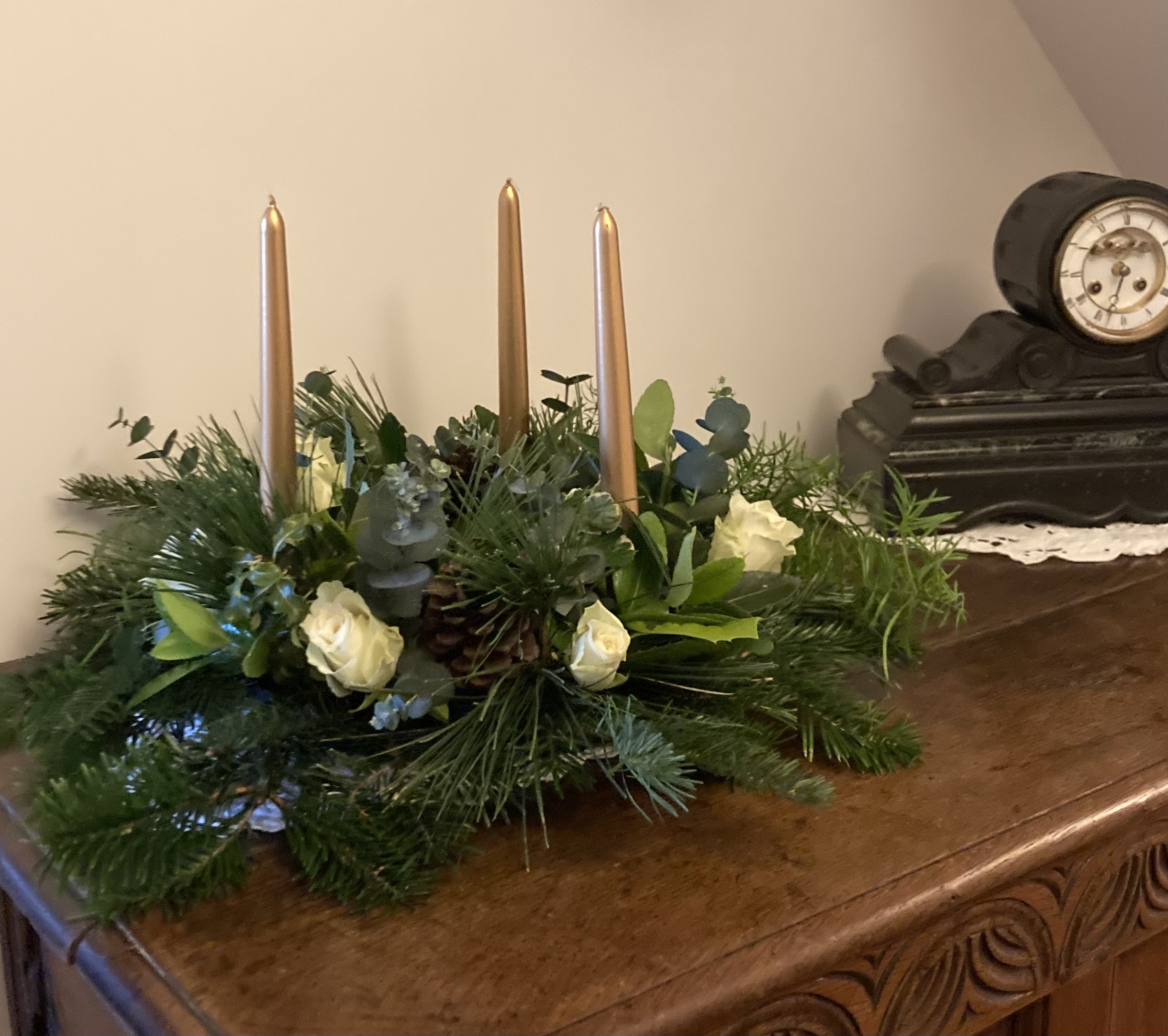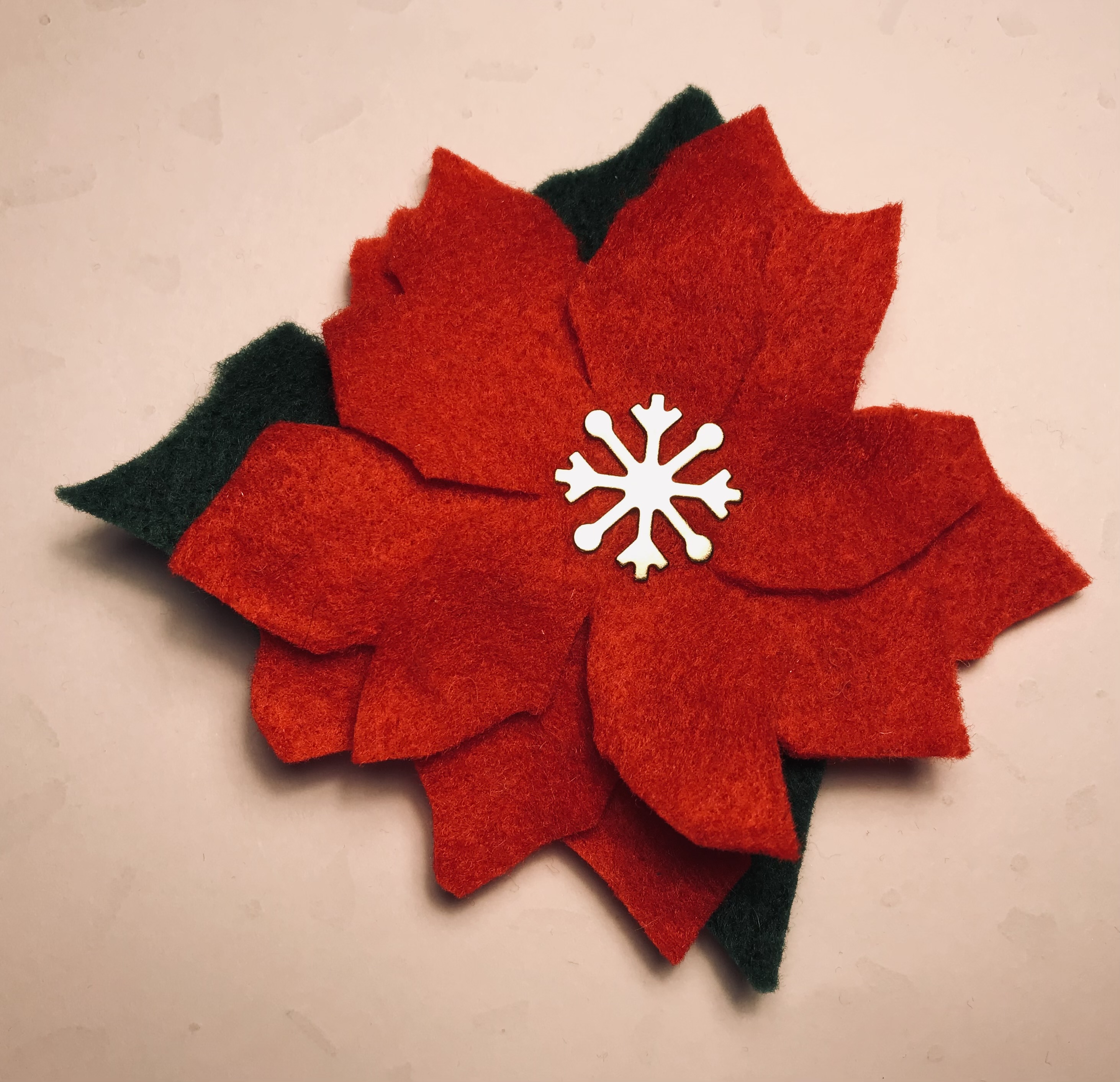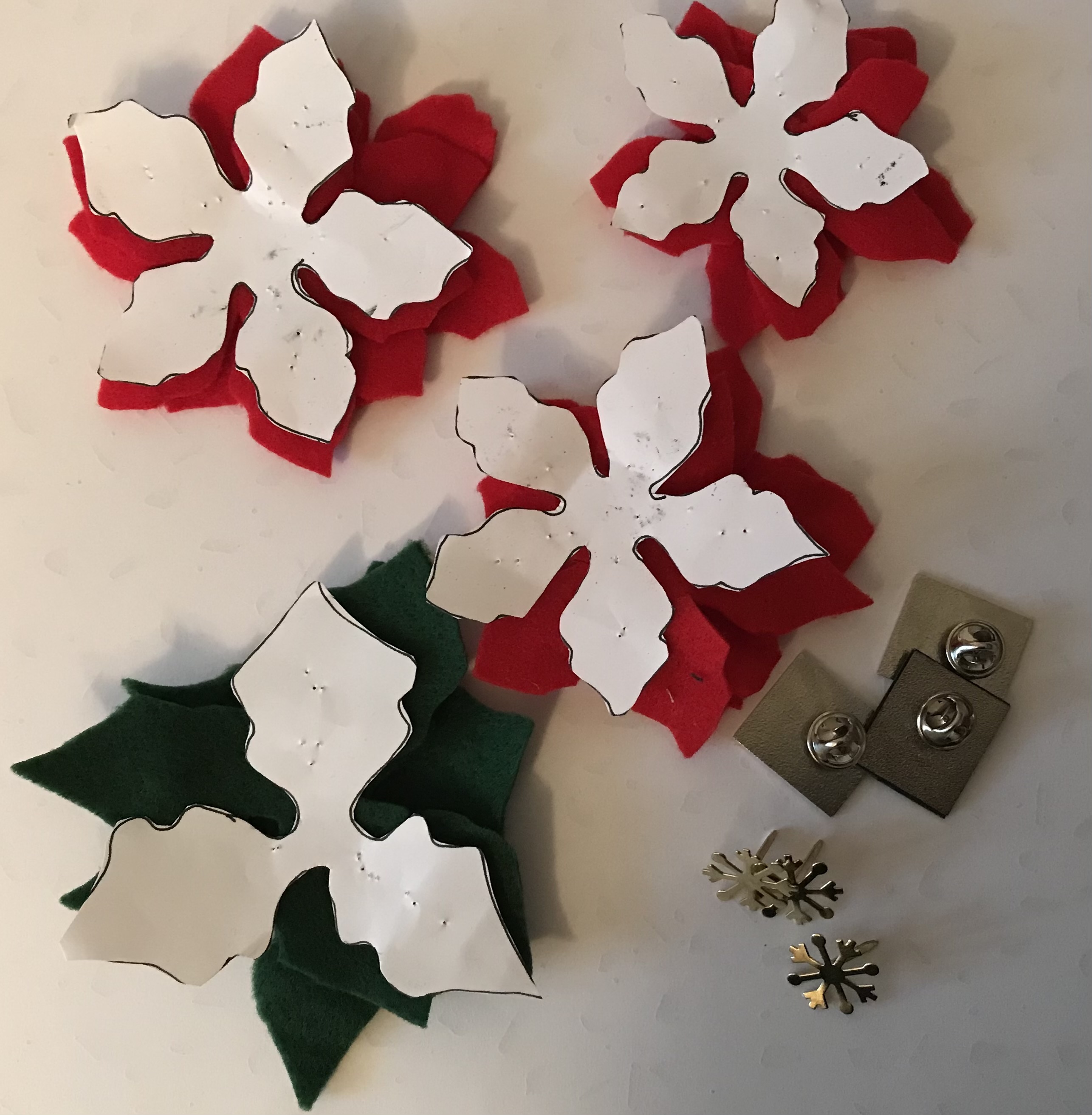 I cut felt from a poinsettia paper pattern (a mini batch making session)
