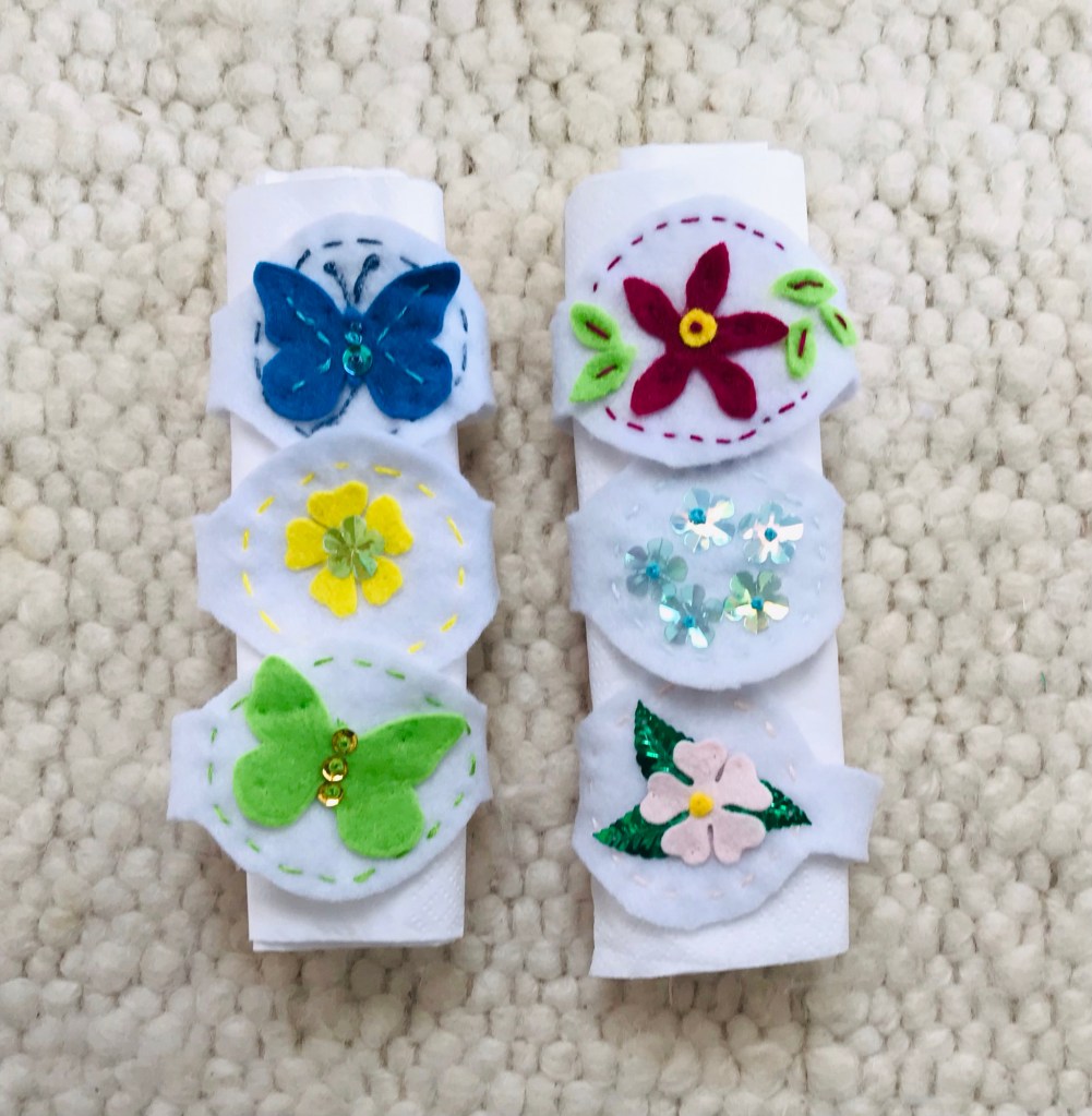 These sweet little napkin rings were quick makes from felt scraps.