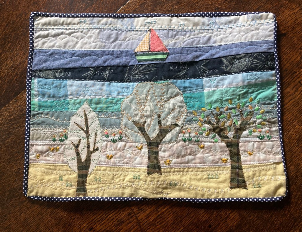 Machine appliquè March 17, 2026 ~ guernseyjane Using stitches from my new machine and just a little hand embroidery I turned strips of scrap from old clothes and fabric remnants into a rustic placemat A great way of trying out the decorative stitches. Share this: Share on X (Opens in new window) X Share on Facebook (Opens in new window) Facebook Like Loading...