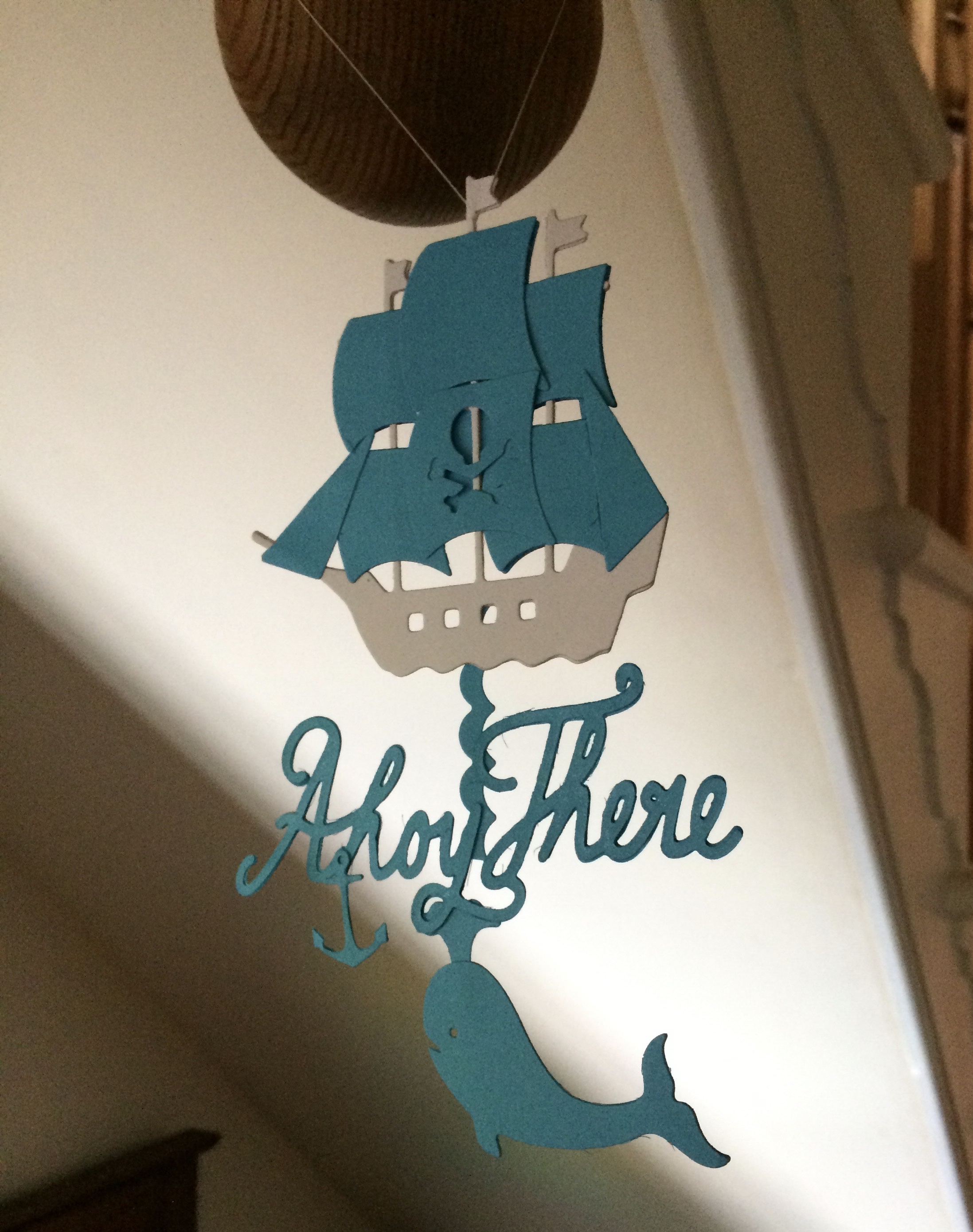 The pirate ship die alone is 4 inches square (about 10.5 cm) so works well as part of a dangler.