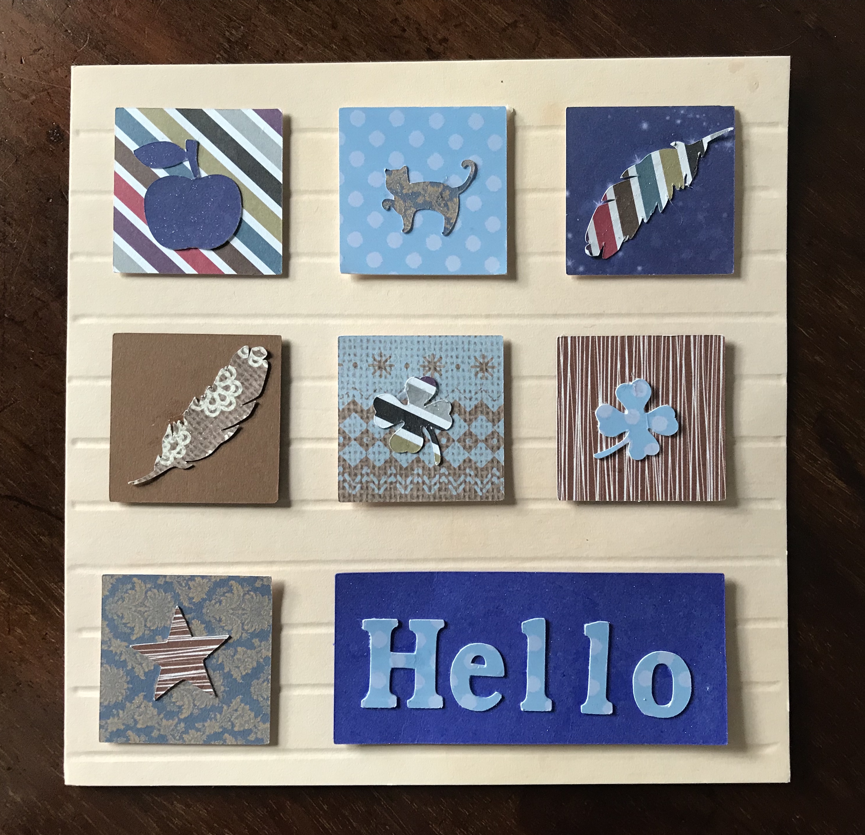 Each element from the set was cut from card two or three times and stuck together to give it some stability and to sandwich in the thread hanger. I tried to use most of this fun Docrafts die set but couldn’t quite work the palm tree, desert island or octopus into this version. Next time maybe.