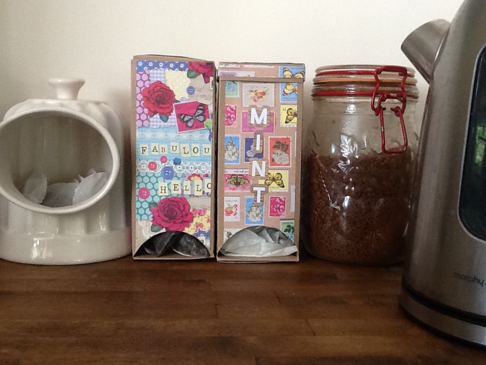 the jumble of teas was a mess so a set of boxes to tidy them up was needed