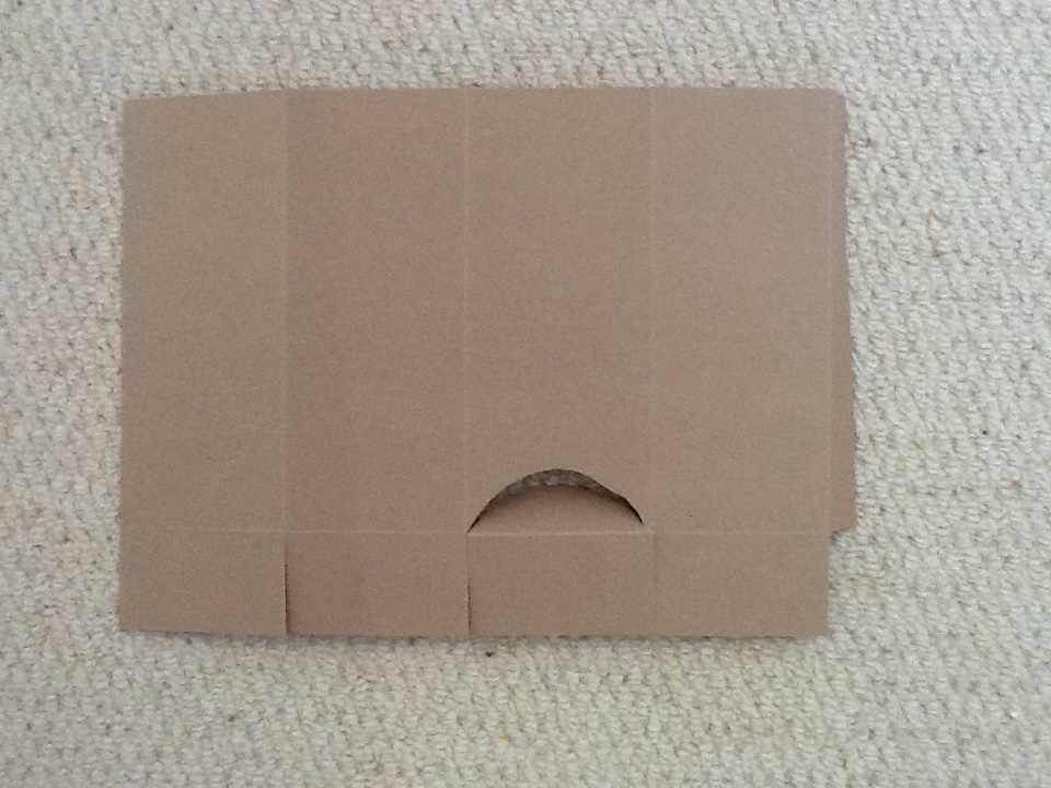 lay the sheet landscape in front of you and score at 7, 14, 21 and 28 cm down then 4 cm across. Cut out the tiddly corner and cut up the bottoms as shown to create the base flaps. Place the tape roll on one of the panels at the bottom crease and scalpel inside it to create the opening