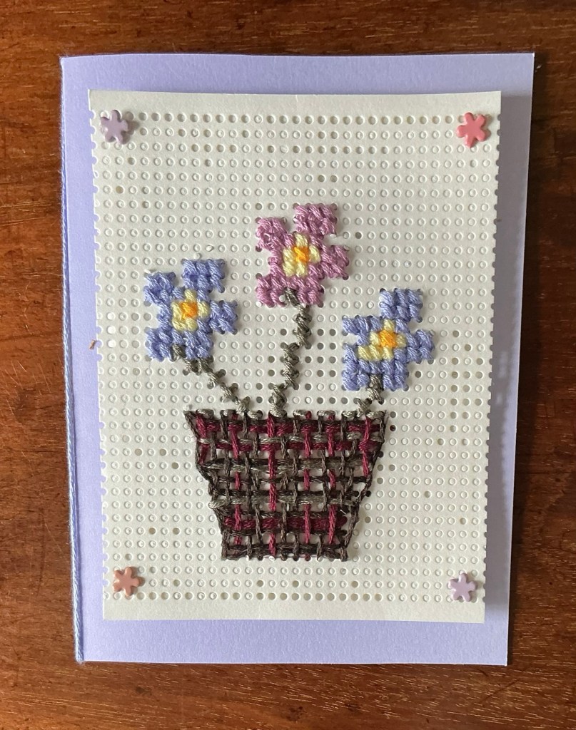 My cross stitch ‘to do’ list is huge but I had to try this basket of flowers before any of the bigger ones because I am trying cure myself of a YouTube addiction!