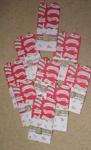 I need to use some of my lovely Christmas papers so made up the set of cutlery pouches as a gift for someone I know likes the concept.