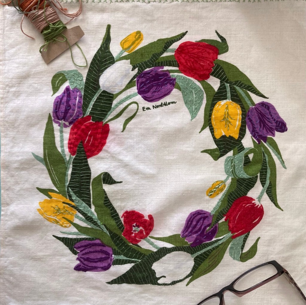 This beautiful Swedish mat had a small stain on it so I stitched (simple straight and cross stitch with embroidery floss) over the printing until the stain ‘disappeared’ and now it is back in use as beautiful as ever.