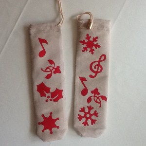 so here I have decorated some glasses bags in a festive style so they can be given another life as gift bags later this year
